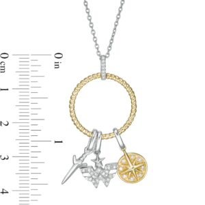1/8 CT. T.W. Diamond Lasso Circle Pendant with Theme Charms in Sterling Silver and 10K Gold