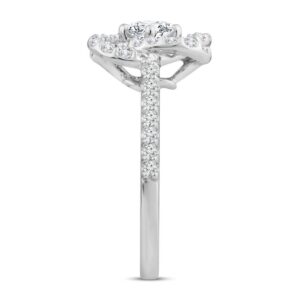 This eye-catching diamond ring features a unique interwoven design to symbolize the strength of love and keeping you centered. Crafted of 14K white gold, the ring features a beautiful round center diamond and dazzles with round diamonds throughout, bringing its total diamond weight to 1 carat.